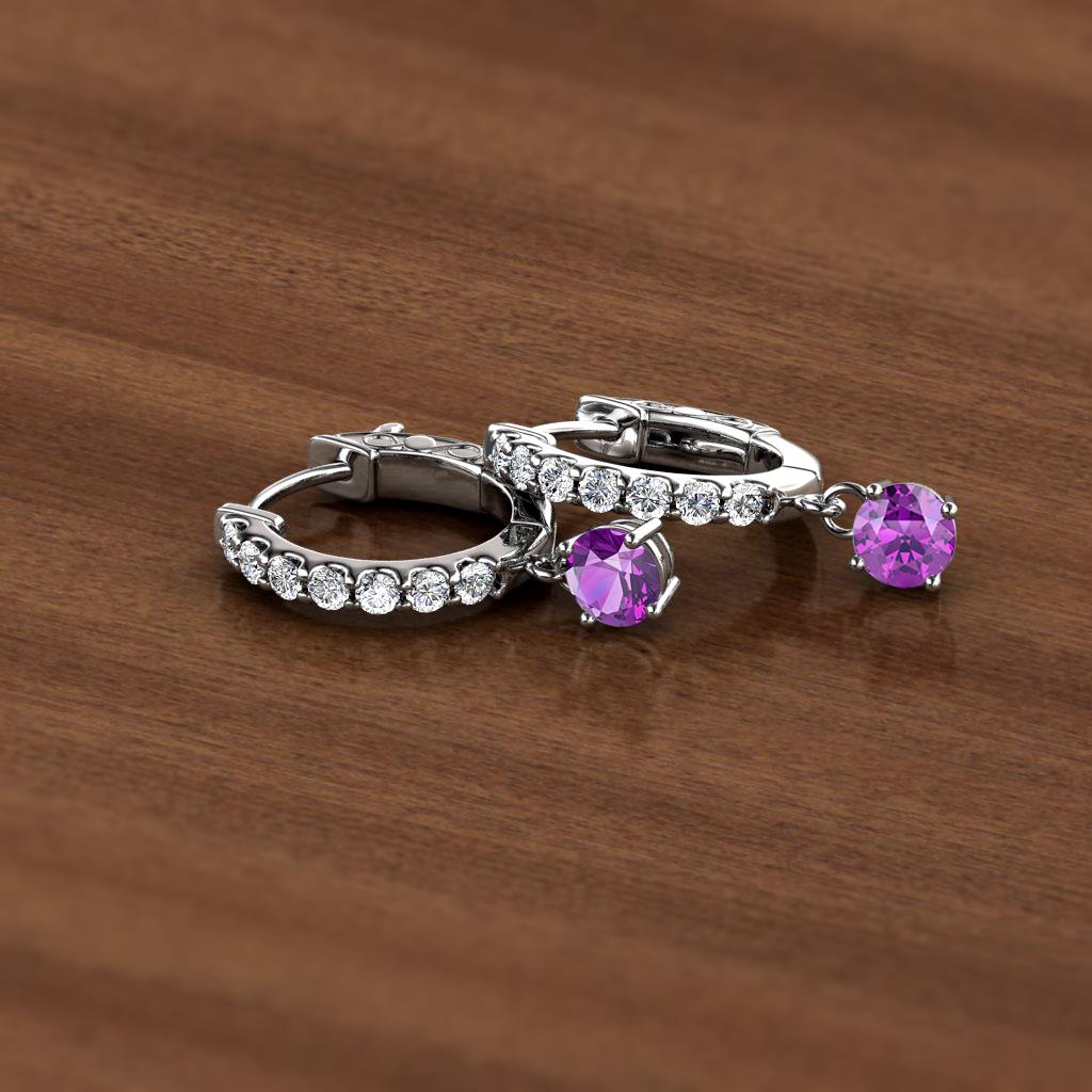 Round Amethyst and Diamond 5/8 ctw Womens Dangle Huggie Hoop Earrings 14K White Gold More Details ...