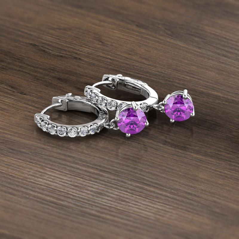 Round Amethyst and Diamond 1.08 ctw Womens Dangle Huggie Hoop Earrings 14K White Gold More Details ...