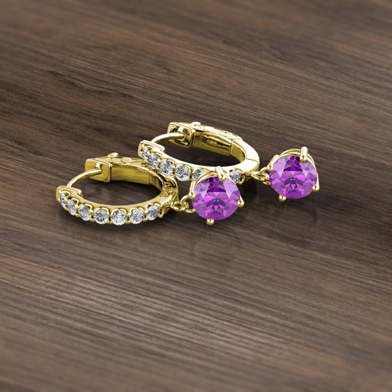 Round Amethyst and Diamond 1.08 ctw Womens Dangle Huggie Hoop Earrings 14K Yellow Gold More Details ...