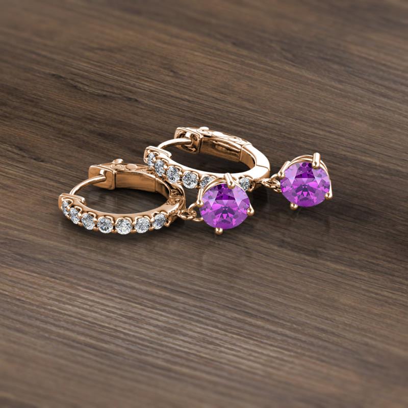 Round Amethyst and Diamond 1.08 ctw Womens Dangle Huggie Hoop Earrings 14K Rose Gold More Details ...