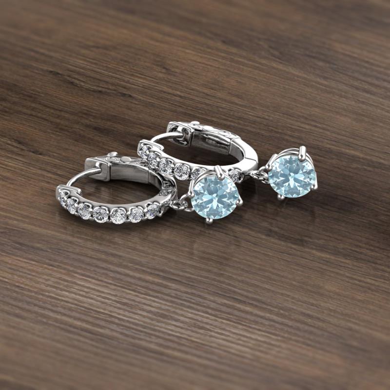 Round Aquamarine and Diamond 1.08 ctw Womens Dangle Huggie Hoop Earrings 14K White Gold More Details ...