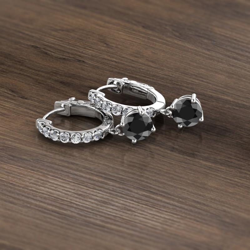 An enchanting twist on classic hoops, these earrings feature Diamond huggie hoops with dangling Black Diamond perfect to elevate the look of any outfit.