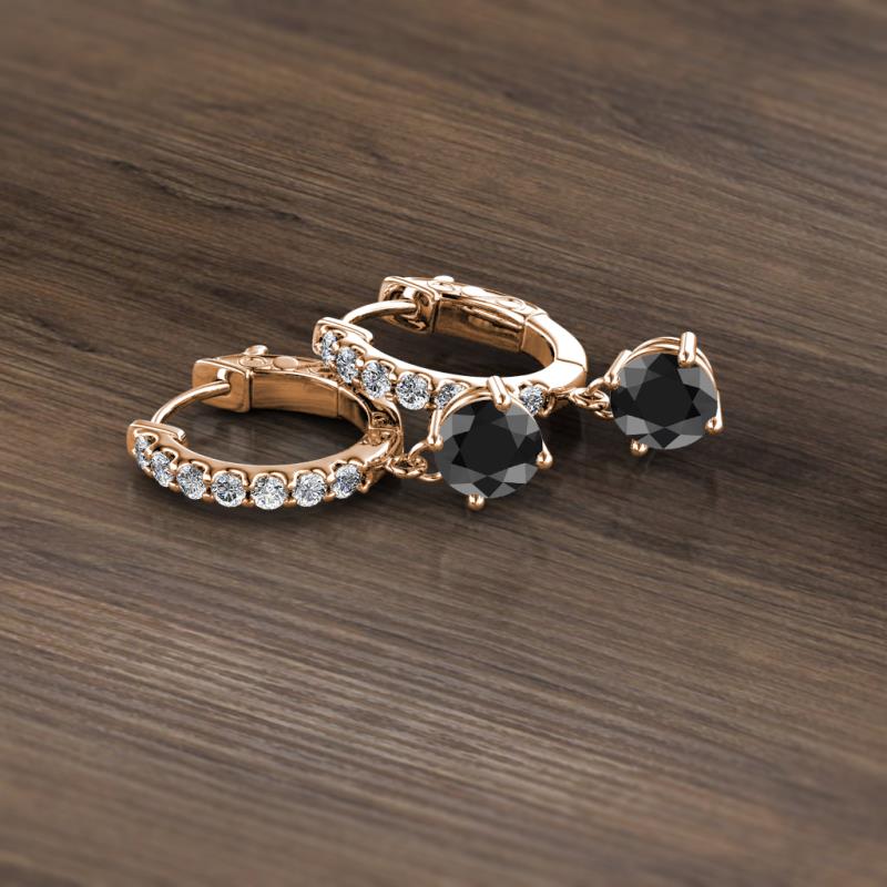 Round Black and White Diamond 1.28 ctw Womens Dangle Huggie Hoop Earrings 14K Rose Gold More Details ...