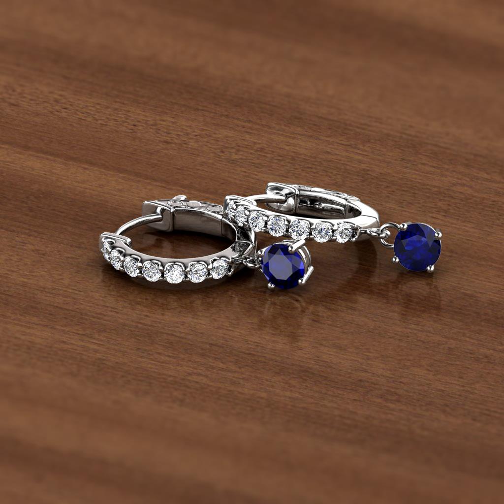 Round Blue Sapphire and Diamond 3/4 ctw Womens Dangle Huggie Hoop Earrings 14K White Gold More Details ...