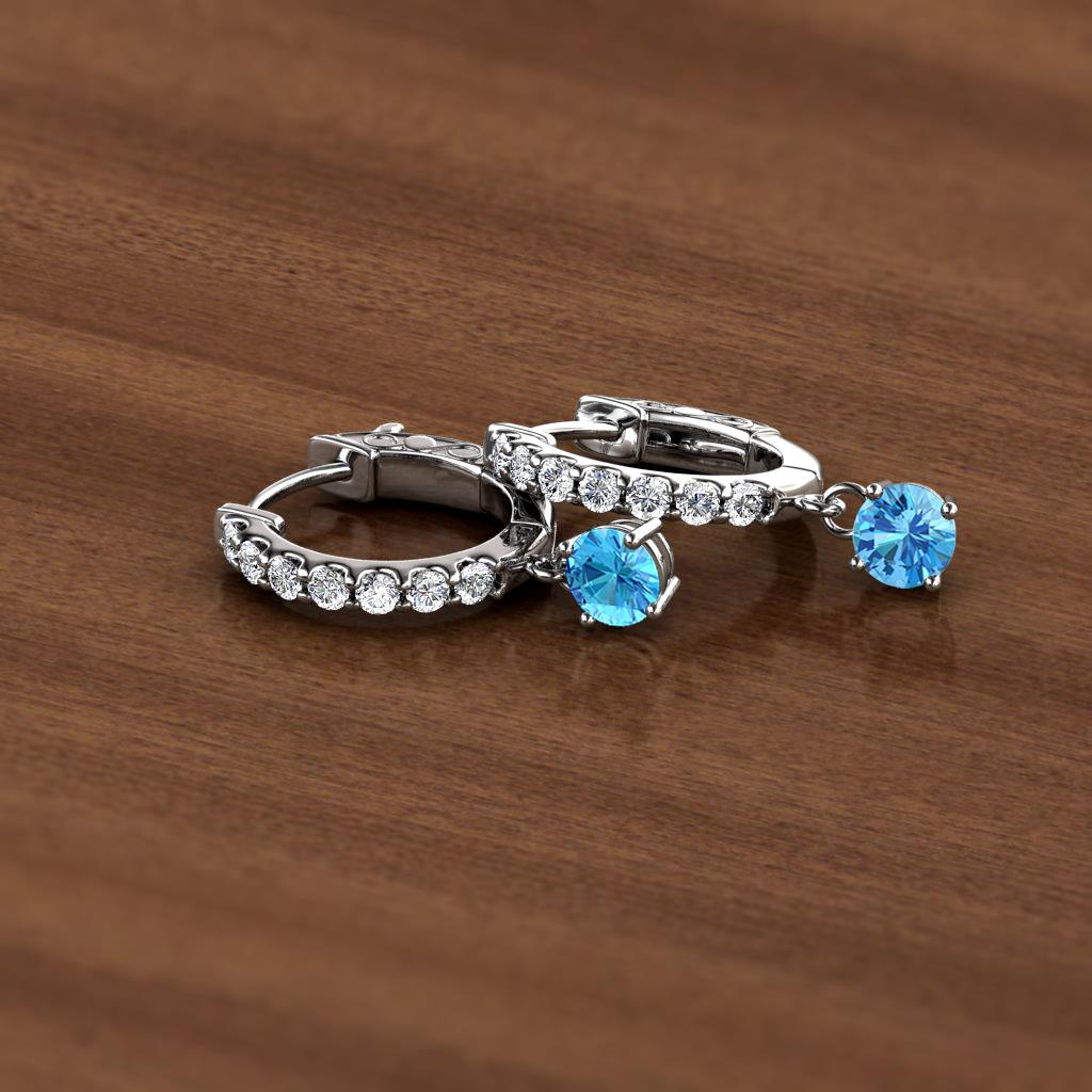 Round Blue Topaz and Diamond 3/4 ctw Womens Dangle Huggie Hoop Earrings 14K White Gold More Details ...