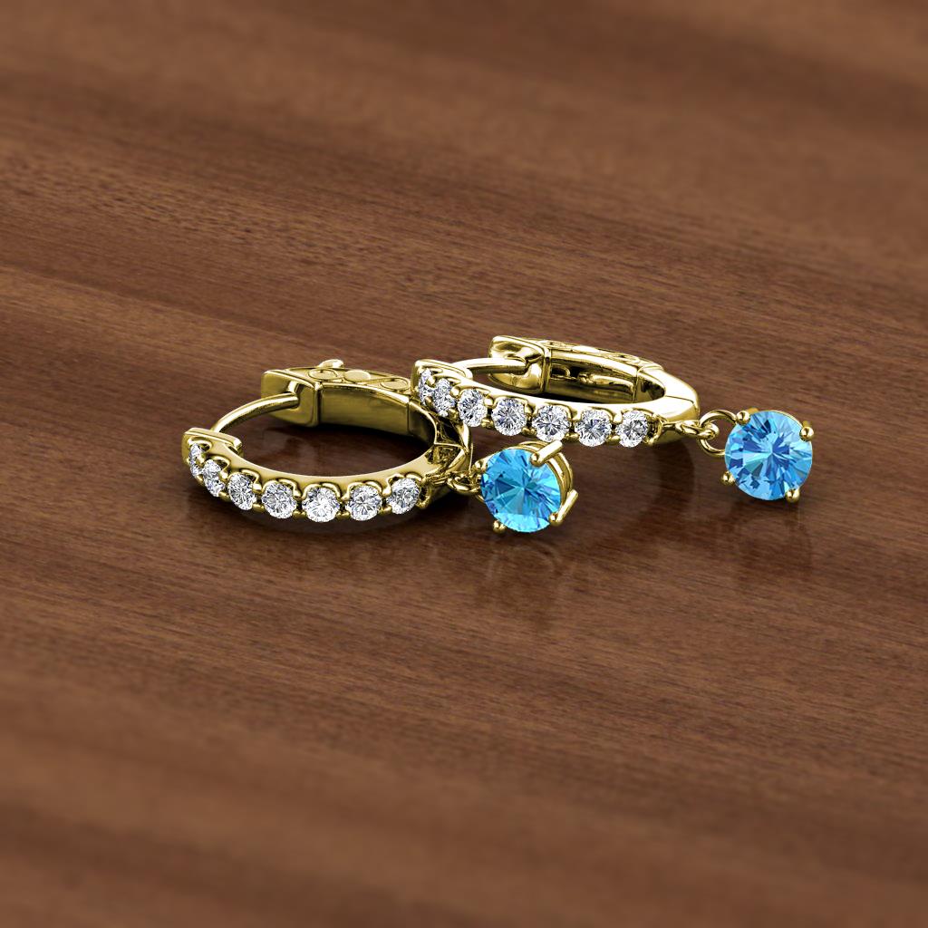 Round Blue Topaz and Diamond 3/4 ctw Womens Dangle Huggie Hoop Earrings 14K Yellow Gold More Details ...
