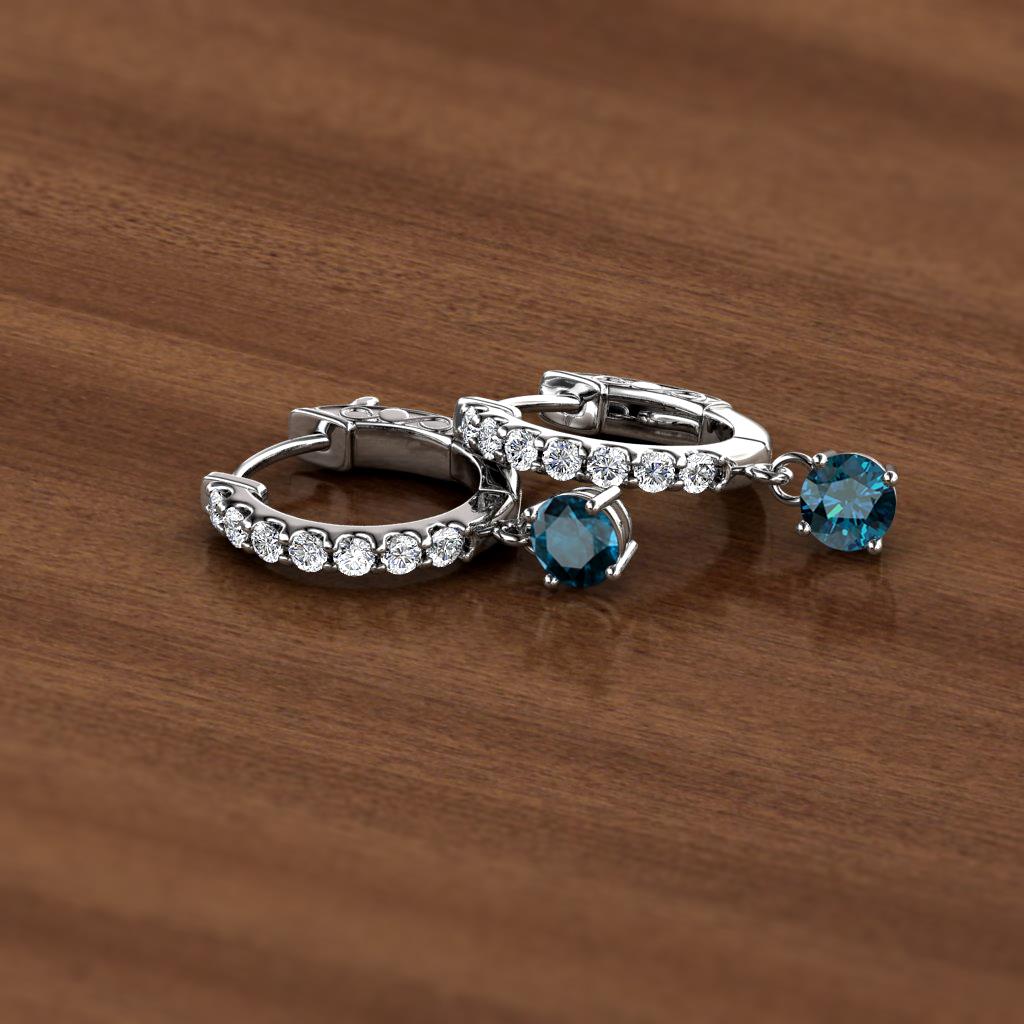 Round Blue and White Diamond 3/4 ctw Womens Dangle Huggie Hoop Earrings 14K White Gold More Details ...