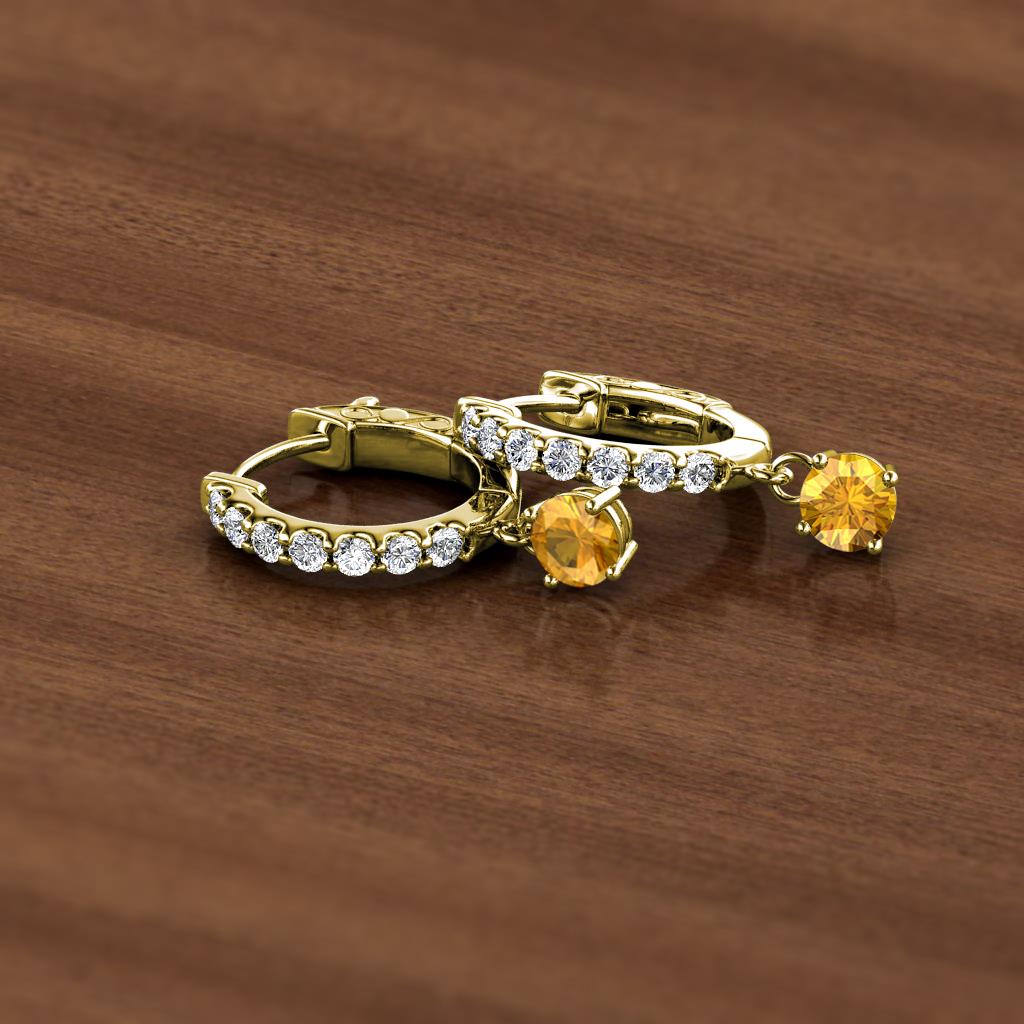 Round Citrine and Diamond 5/8 ctw Womens Dangle Huggie Hoop Earrings 14K Yellow Gold More Details ...