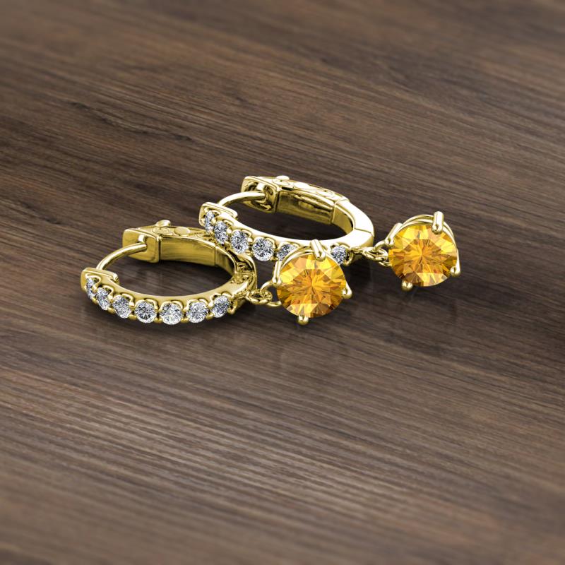 Round Citrine and Diamond 1.08 ctw Womens Dangle Huggie Hoop Earrings 14K Yellow Gold More Details ...