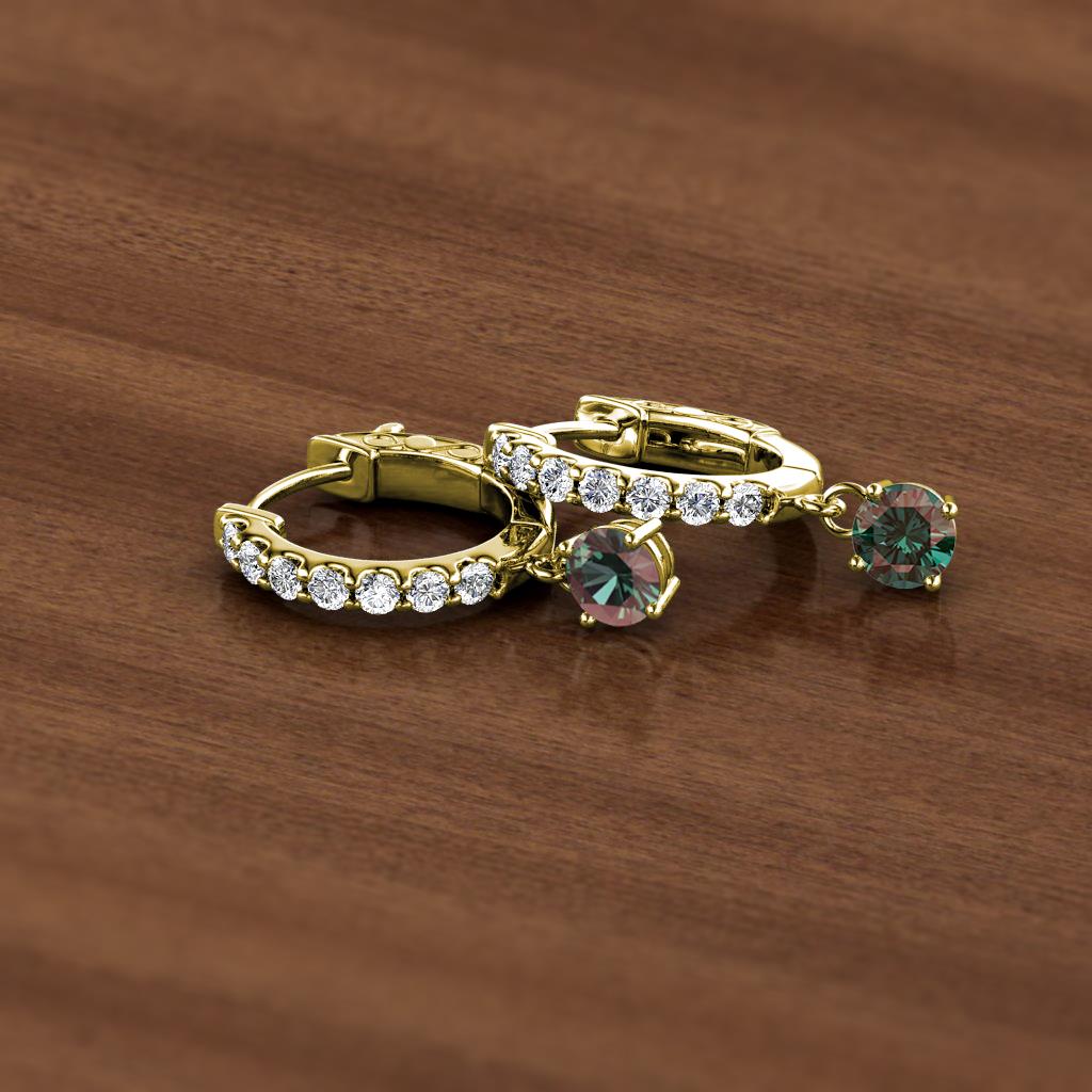 Round Created Alexandrite and Diamond 7/8 ctw Womens Dangle Huggie Hoop Earrings 14K Yellow Gold More Details ...