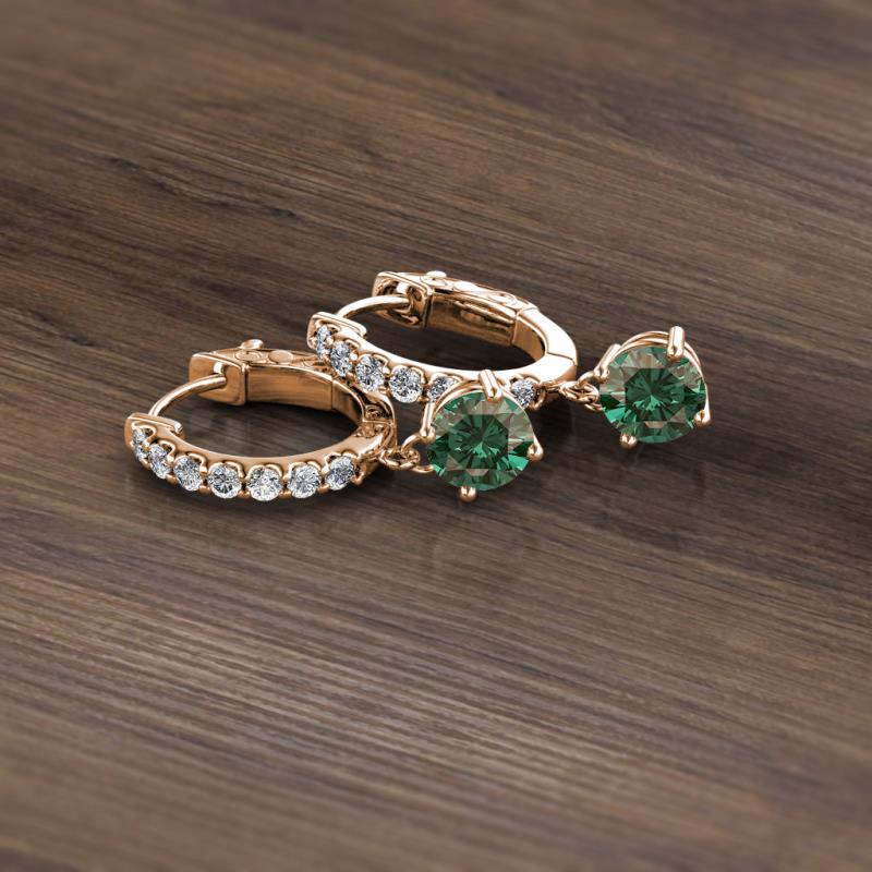 Round Created Alexandrite and Diamond 1.28 ctw Womens Dangle Huggie Hoop Earrings 14K Rose Gold More Details ...