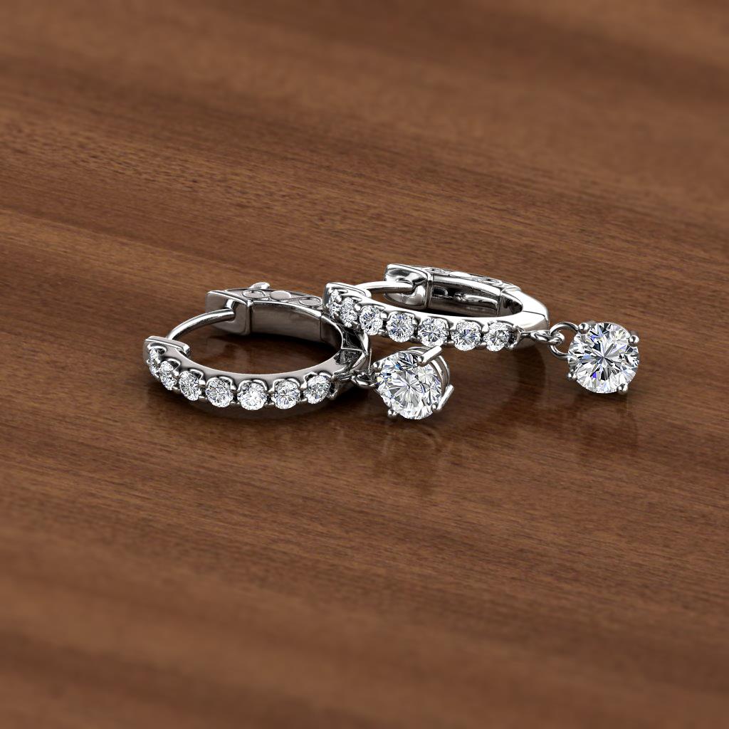 An enchanting twist on classic hoops, these earrings feature Diamond huggie hoops with dangling Diamond perfect to elevate the look of any outfit.