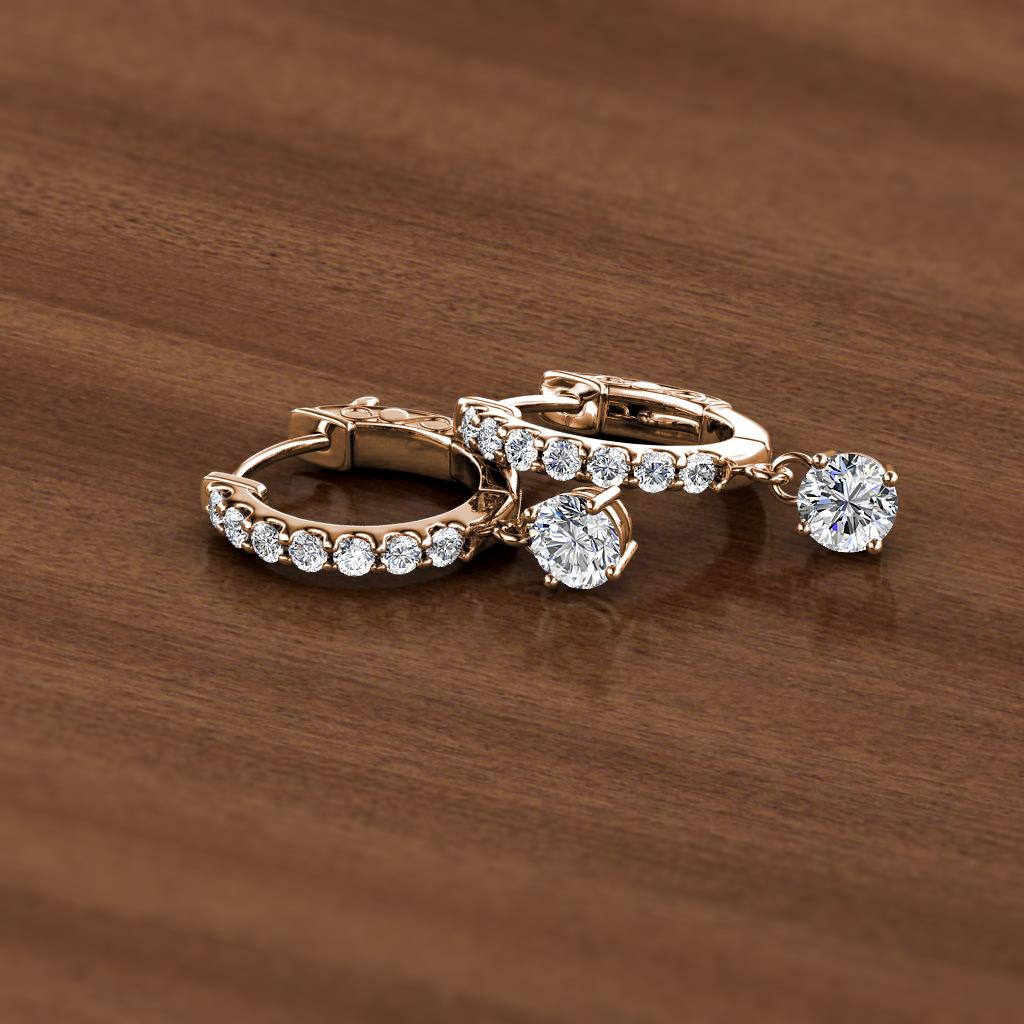 Round Diamond 3/4 ctw Womens Dangle Huggie Hoop Earrings 14K Rose Gold More Details ...