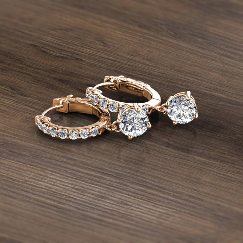 Round Diamond 1.28 ctw Womens Dangle Huggie Hoop Earrings 14K Rose Gold More Details ...