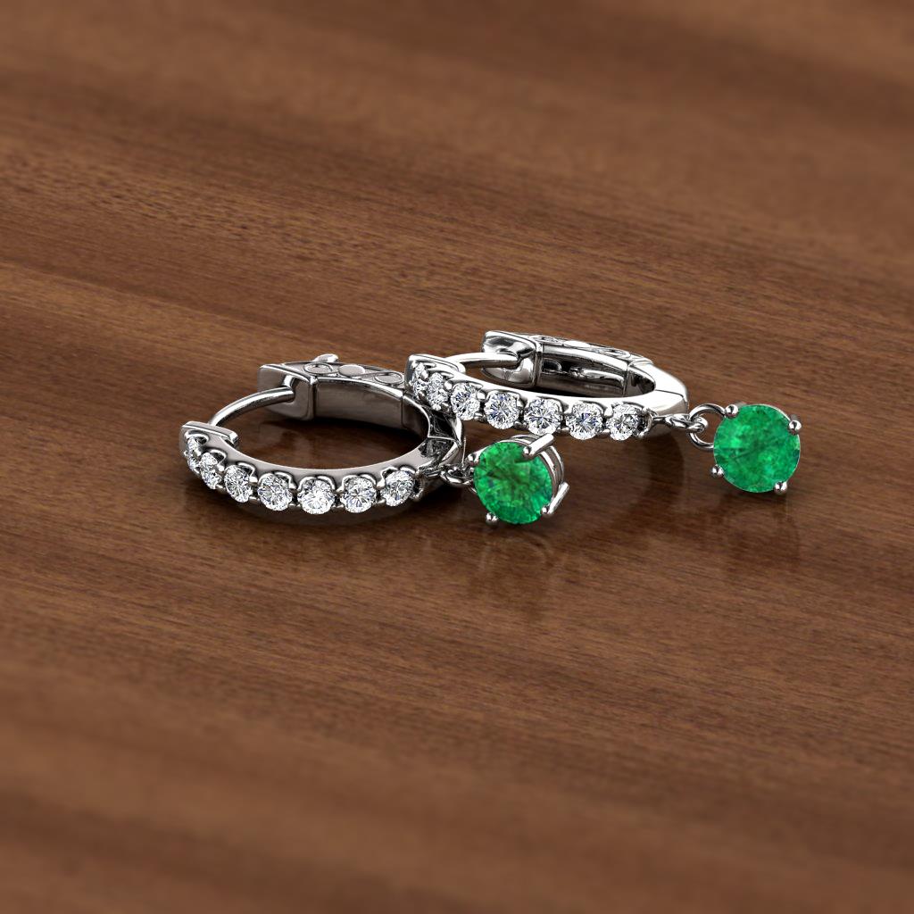 Round Emerald and Diamond 5/8 ctw Womens Dangle Huggie Hoop Earrings 14K White Gold More Details ...