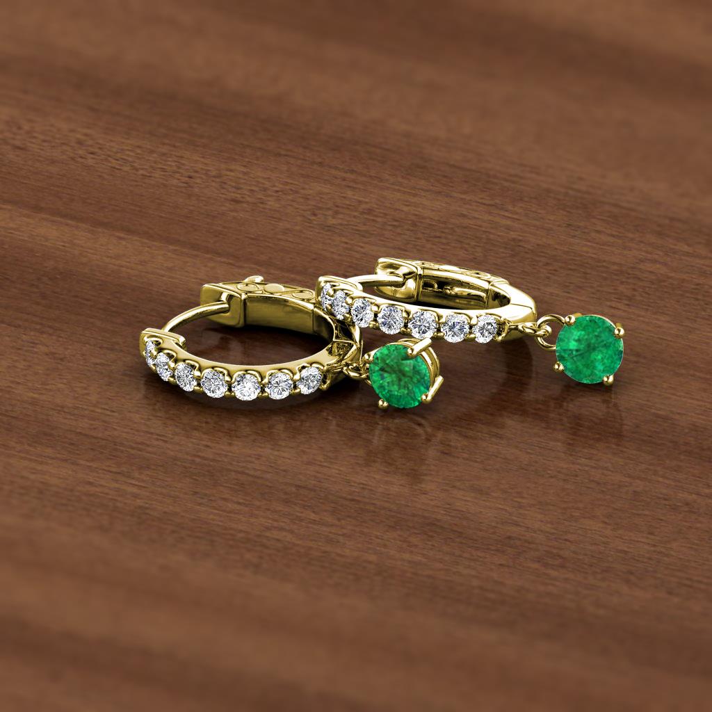 Round Emerald and Diamond 5/8 ctw Womens Dangle Huggie Hoop Earrings 14K Yellow Gold More Details ...