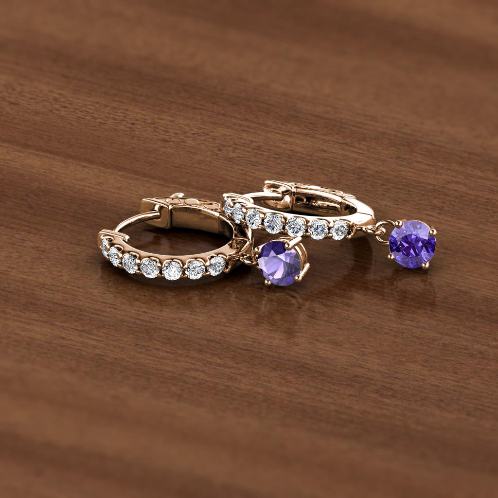 Round Iolite and Diamond 5/8 ctw Womens Dangle Huggie Hoop Earrings 14K Rose Gold More Details ...