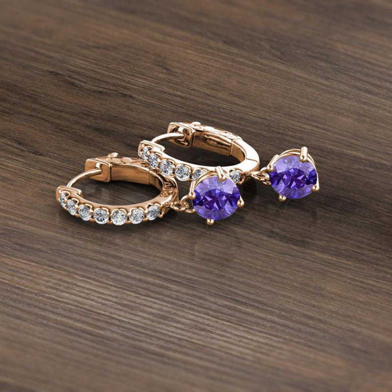 Round Iolite and Diamond 1.08 ctw Womens Dangle Huggie Hoop Earrings 14K Rose Gold More Details ...