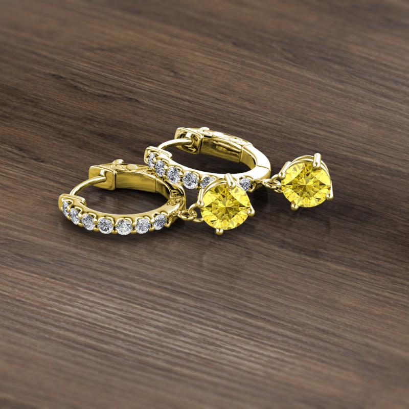 Round Lab Created Yellow Sapphire and Diamond 1.33 ctw Womens Dangle Huggie Hoop Earrings 14K Yellow Gold More Details ...