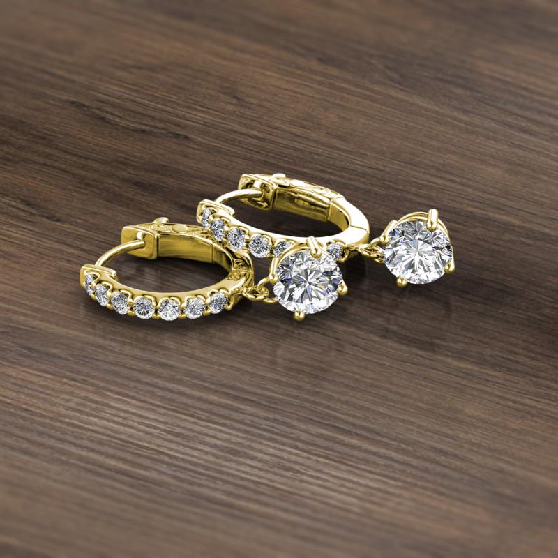 Round Lab Grown Diamond and Diamond 1.28 ctw Womens Dangle Huggie Hoop Earrings 14K Yellow Gold More Details ...