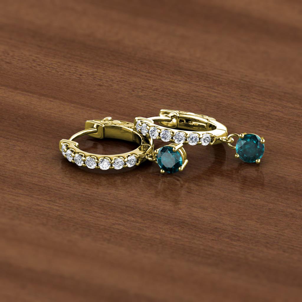 Round London Blue Topaz and Diamond 3/4 ctw Womens Dangle Huggie Hoop Earrings 14K Yellow Gold More Details ...