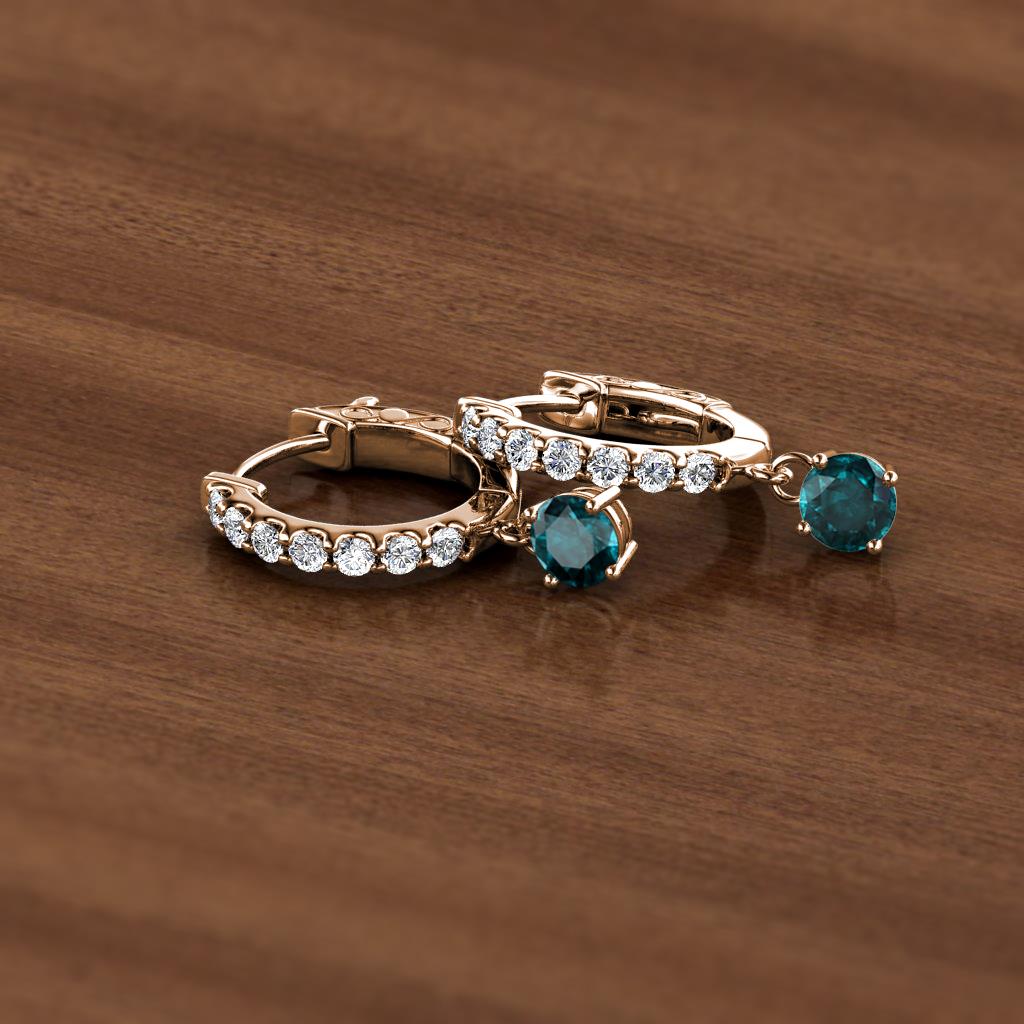 Round London Blue Topaz and Diamond 3/4 ctw Womens Dangle Huggie Hoop Earrings 14K Rose Gold More Details ...