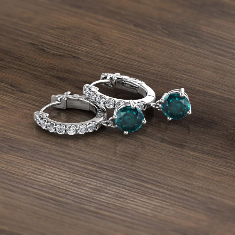 An enchanting twist on classic hoops, these earrings feature Diamond huggie hoops with dangling London Blue Topaz perfect to elevate the look of any outfit.