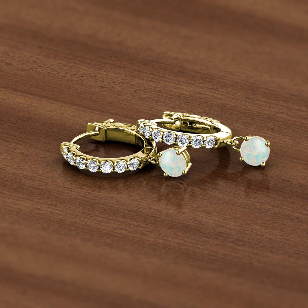 Round Opal and Diamond 5/8 ctw Womens Dangle Huggie Hoop Earrings 14K Yellow Gold More Details ...