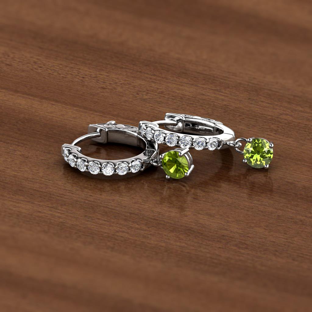Round Peridot and Diamond 7/8 ctw Womens Dangle Huggie Hoop Earrings 14K White Gold More Details ...