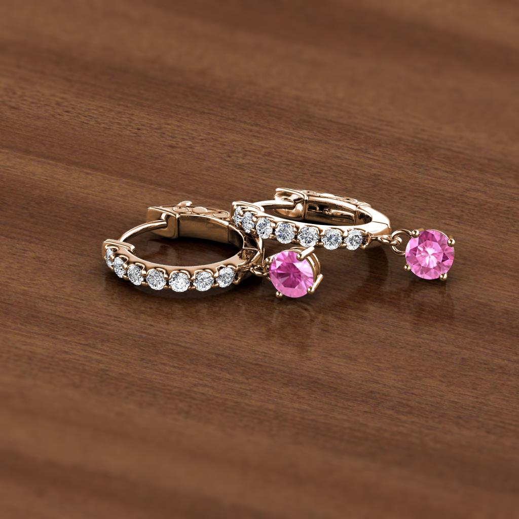 Round Pink Sapphire and Diamond 3/4 ctw Womens Dangle Huggie Hoop Earrings 14K Rose Gold More Details ...