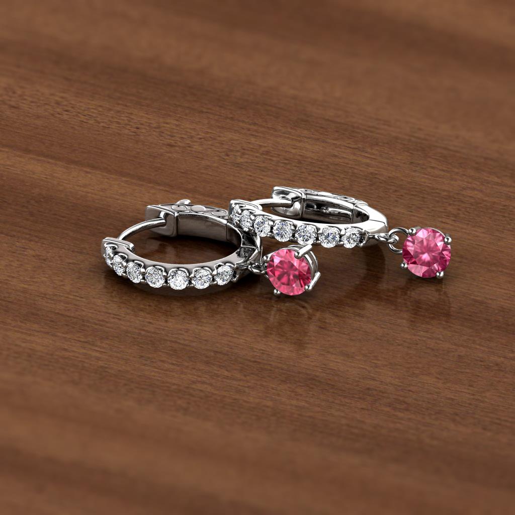 Round Pink Tourmaline and Diamond 5/8 ctw Womens Dangle Huggie Hoop Earrings 14K White Gold More Details ...