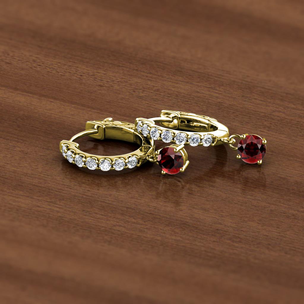 Round Red Garnet and Diamond 7/8 ctw Womens Dangle Huggie Hoop Earrings 14K Yellow Gold More Details ...