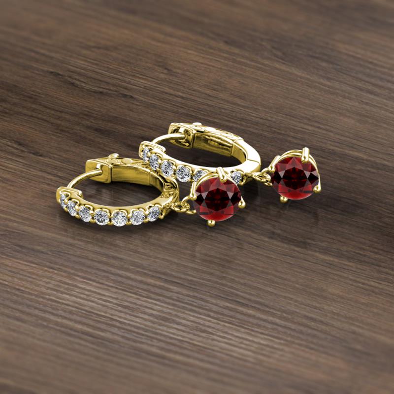 Round Red Garnet and Diamond 1.54 ctw Womens Dangle Huggie Hoop Earrings 14K Yellow Gold More Details ...