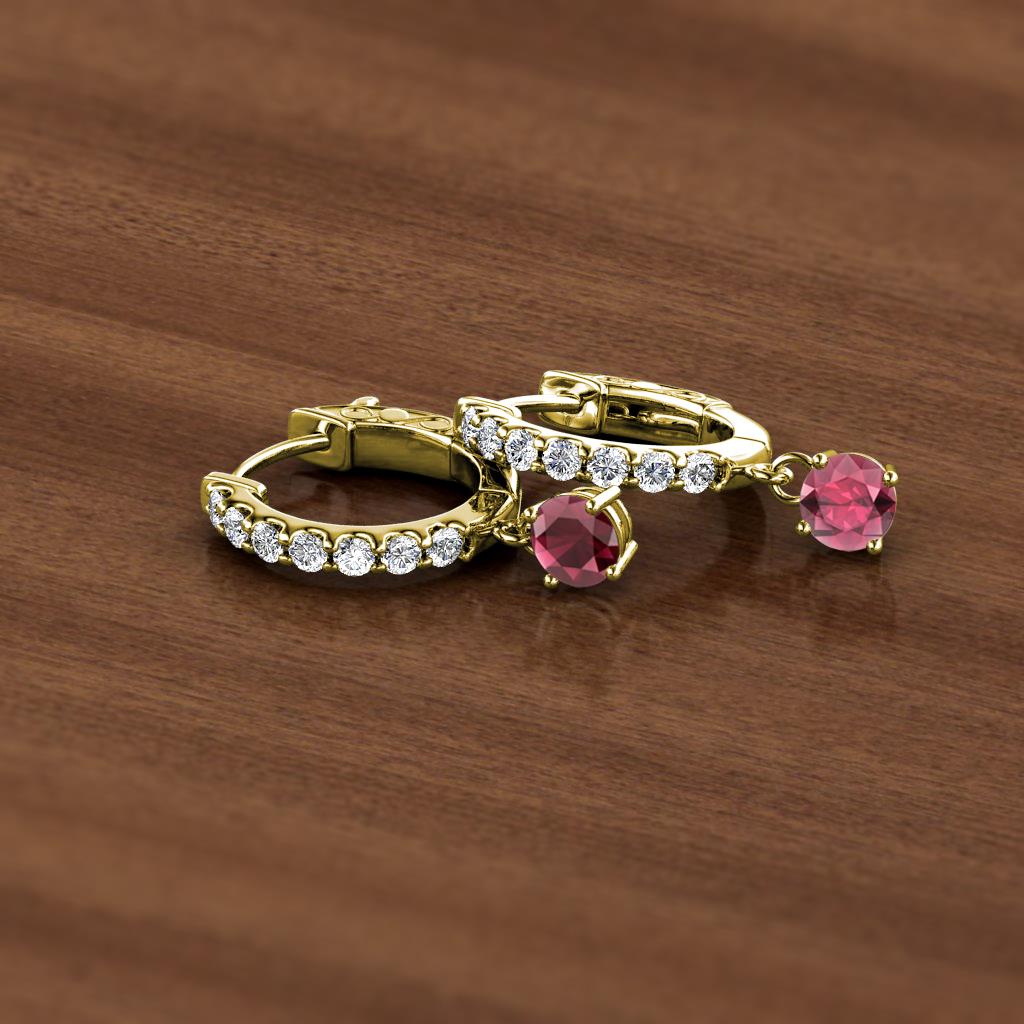 Round Rhodolite Garnet and Diamond 7/8 ctw Womens Dangle Huggie Hoop Earrings 14K Yellow Gold More Details ...