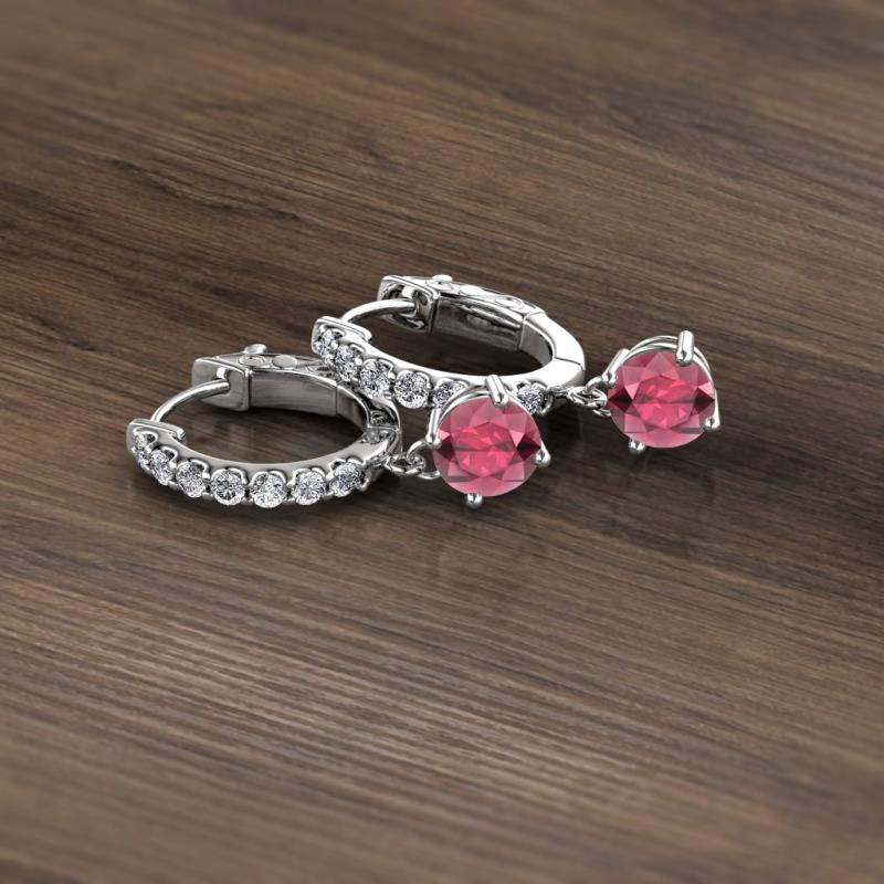 Round Rhodolite Garnet and Diamond 1.28 ctw Womens Dangle Huggie Hoop Earrings 14K White Gold More Details ...