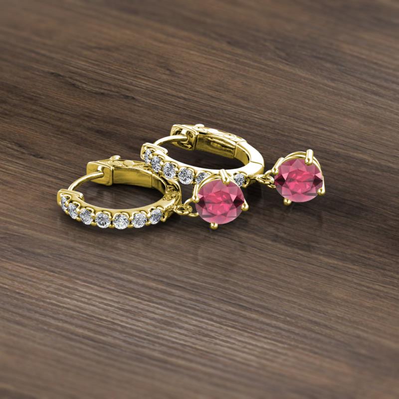 Round Rhodolite Garnet and Diamond 1.28 ctw Womens Dangle Huggie Hoop Earrings 14K Yellow Gold More Details ...