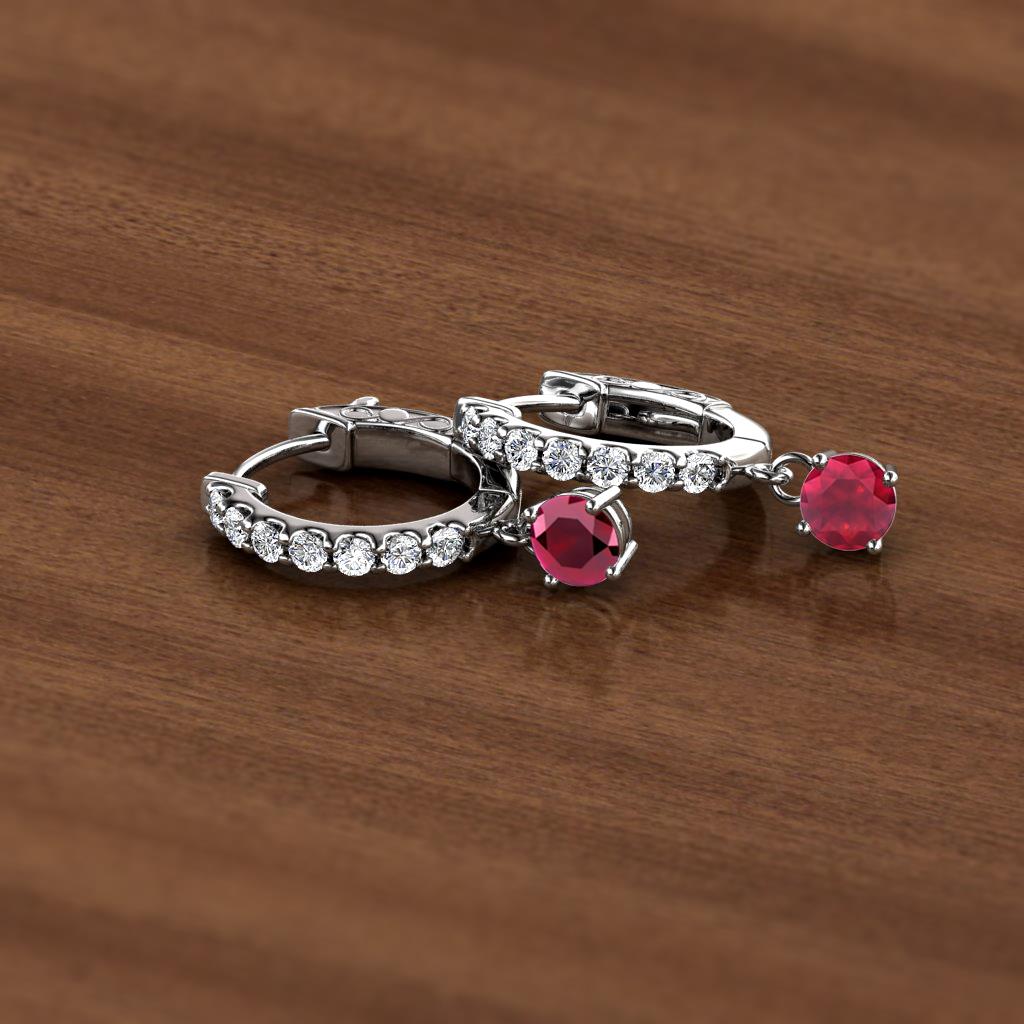 Round Ruby and Diamond 3/4 ctw Womens Dangle Huggie Hoop Earrings 14K White Gold More Details ...