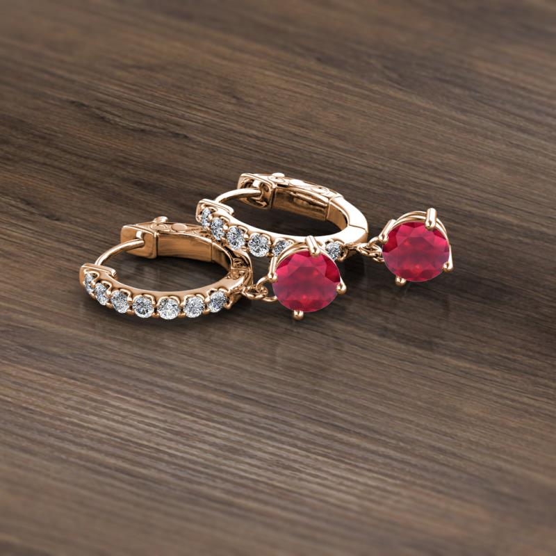 Round Ruby and Diamond 1.33 ctw Womens Dangle Huggie Hoop Earrings 14K Rose Gold More Details ...