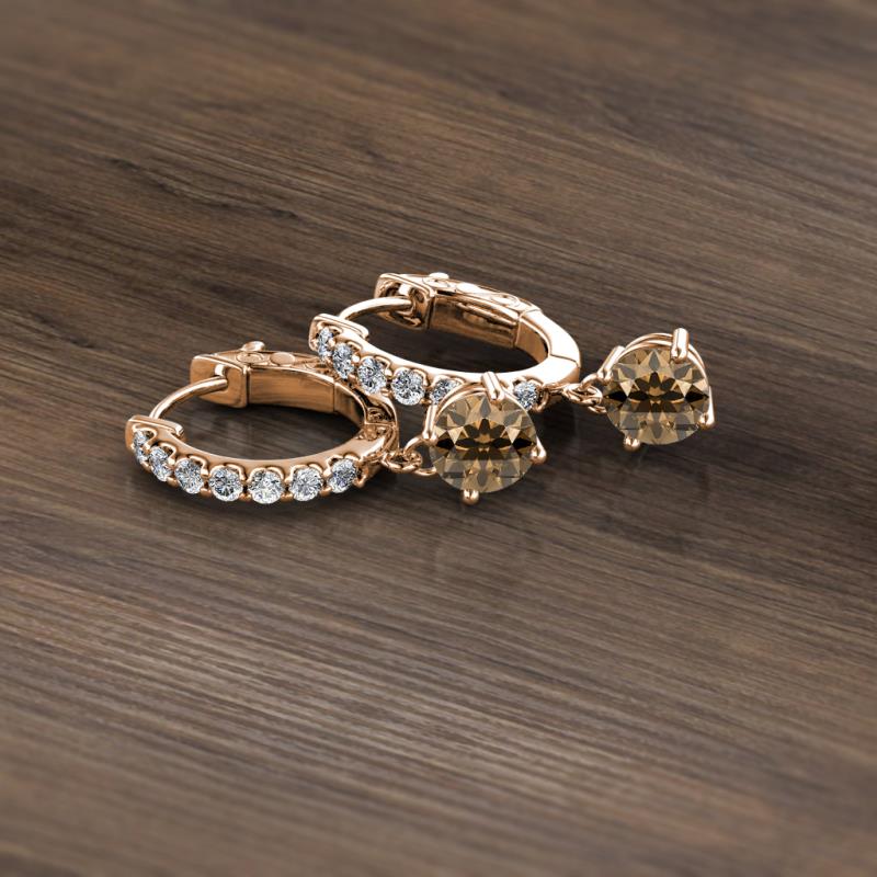Round Smoky Quartz and Diamond 1.23 ctw Womens Dangle Huggie Hoop Earrings 14K Rose Gold More Details ...