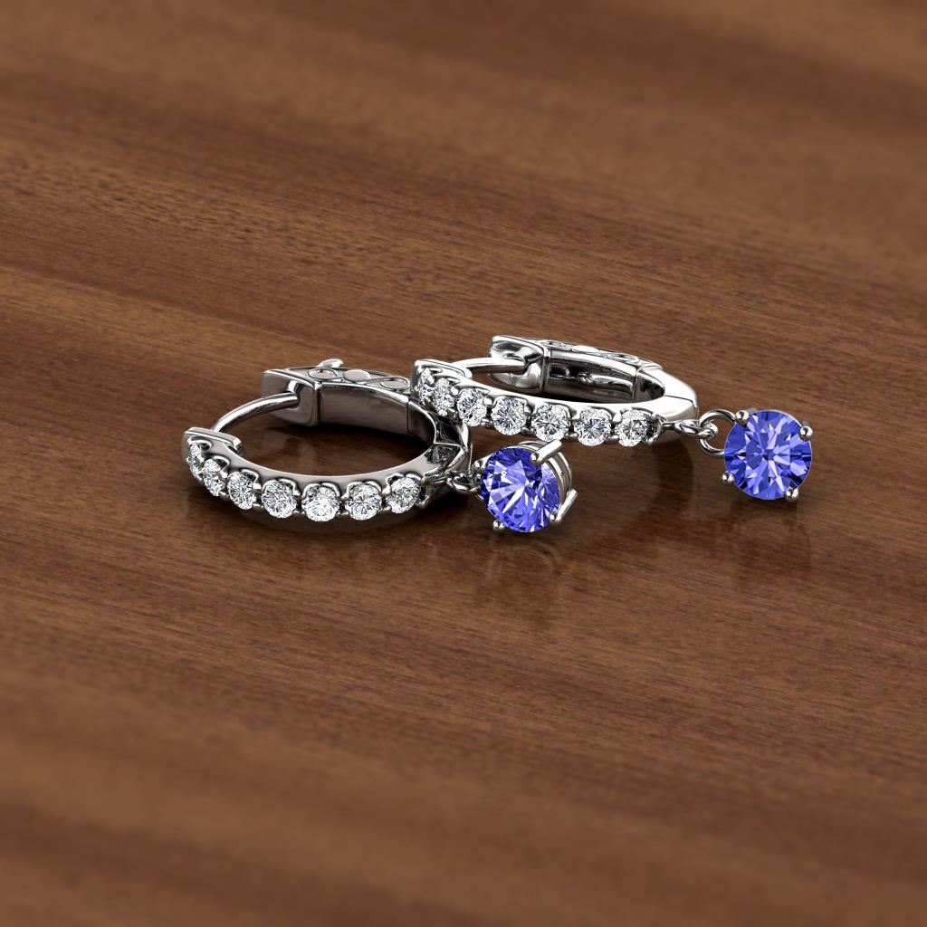 Round Tanzanite and Diamond 3/4 ctw Womens Dangle Huggie Hoop Earrings 14K White Gold More Details ...