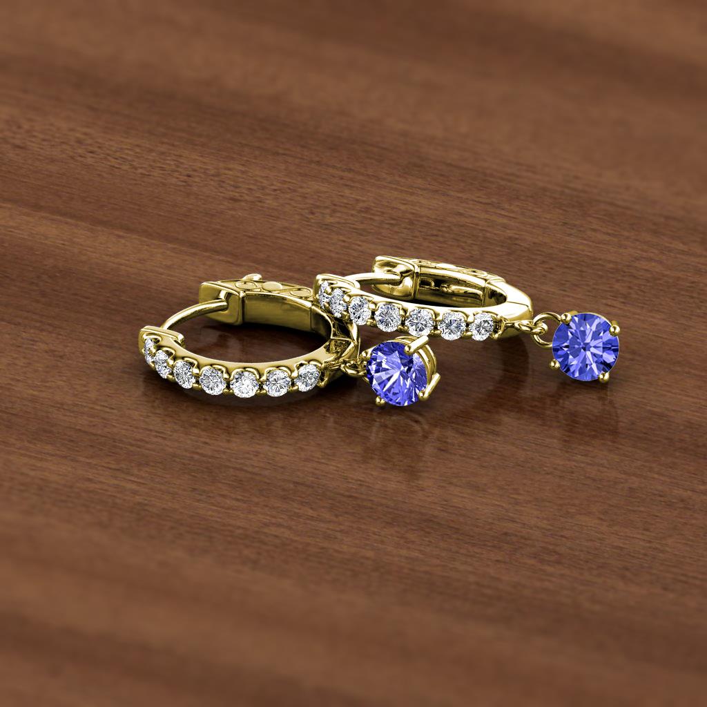 Round Tanzanite and Diamond 3/4 ctw Womens Dangle Huggie Hoop Earrings 14K Yellow Gold More Details ...