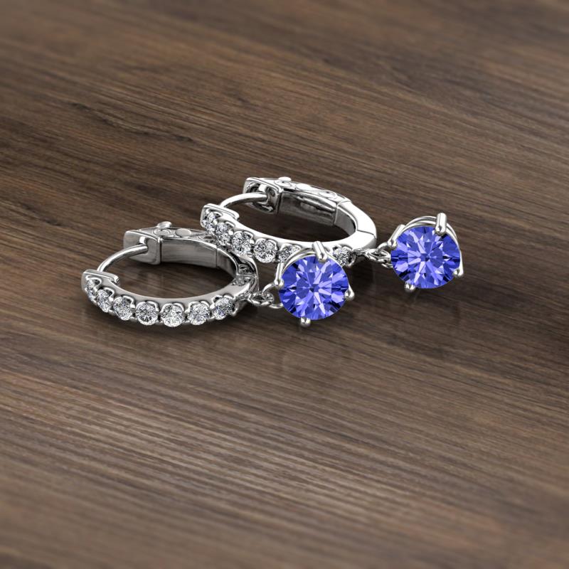 Round Tanzanite and Diamond 1.23 ctw Womens Dangle Huggie Hoop Earrings 14K White Gold More Details ...