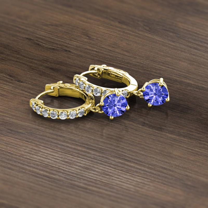Round Tanzanite and Diamond 1.23 ctw Womens Dangle Huggie Hoop Earrings 14K Yellow Gold More Details ...