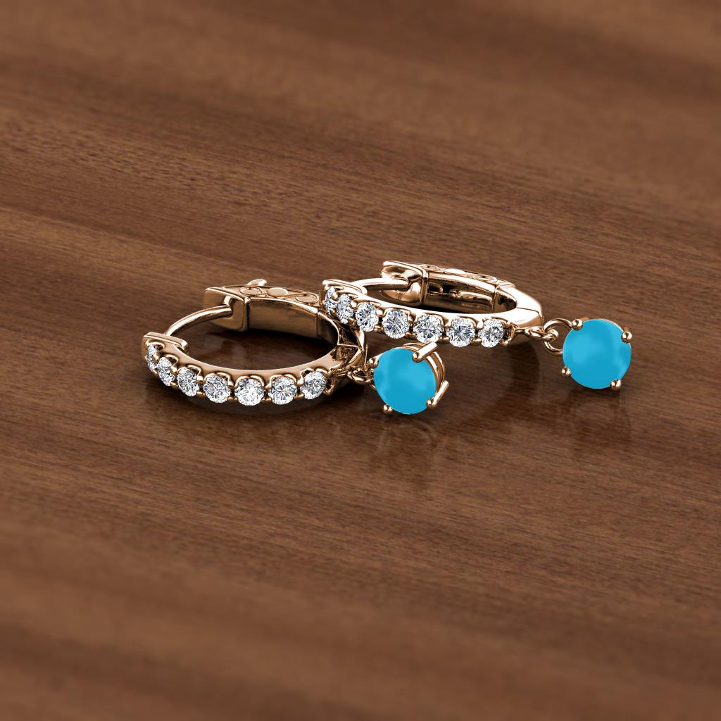 Round Turquoise and Diamond 5/8 ctw Womens Dangle Huggie Hoop Earrings 14K Rose Gold More Details ...