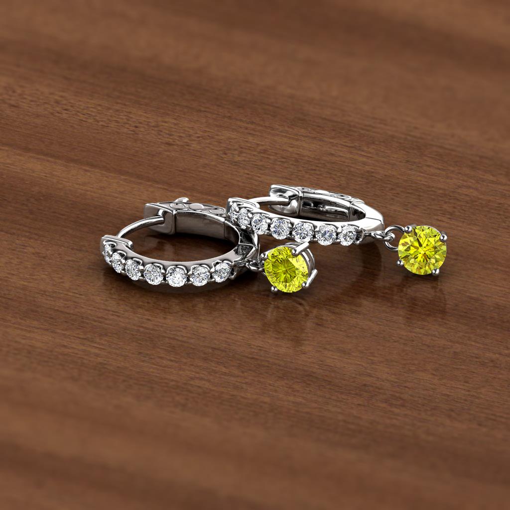 An enchanting twist on classic hoops, these earrings feature Diamond huggie hoops with dangling Yellow Diamond perfect to elevate the look of any outfit.