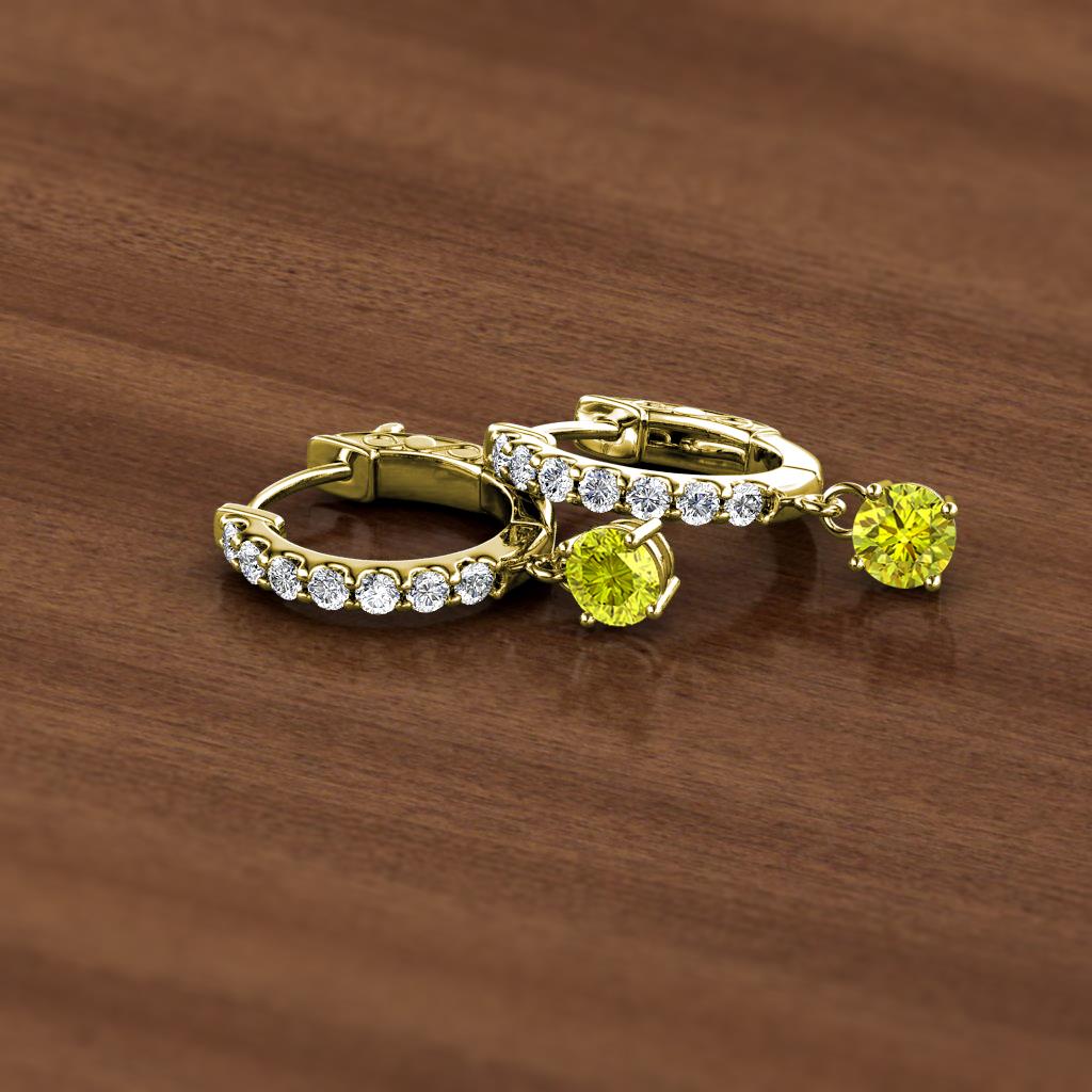 Round Yellow and White Diamond 3/4 ctw Womens Dangle Huggie Hoop Earrings 14K Yellow Gold More Details ...