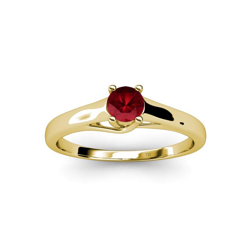 0.55 ct Ruby Round (5.00 mm) Prong set Women Solitaire Engagement Ring in 14K Yellow Gold. More Details ...