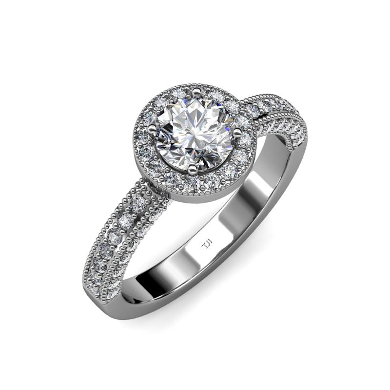 Diamond Womens Halo Engagement Ring with Milgrain Work 1.49 ctw 14K White Gold More Details ...