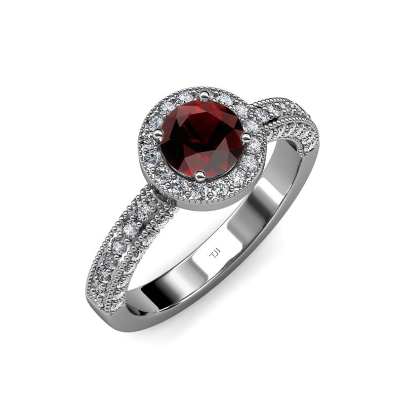 Red Garnet and Diamond Milgrain Womens Halo Engagement Ring 1.54 ctw 18K White Gold More Details ...