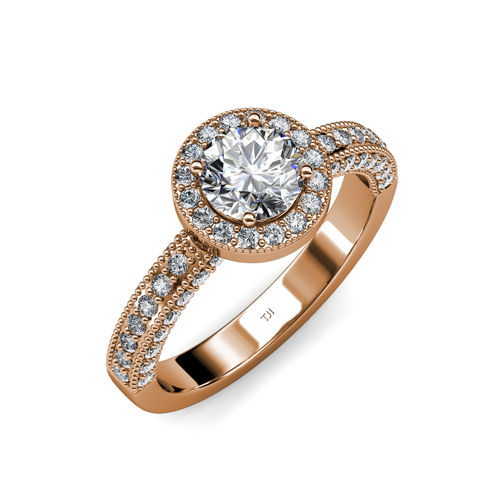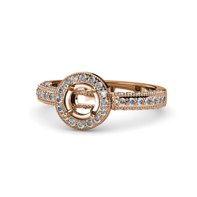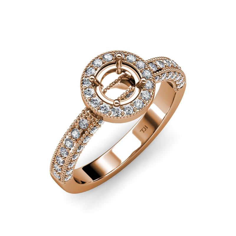 Diamond Four Prong Semi Mount Womens Halo Engagement Ring Setting with Milgrain Work 0.56 ctw 14K Rose Gold More Details ...